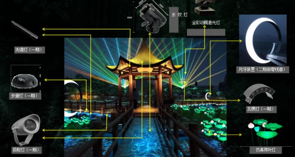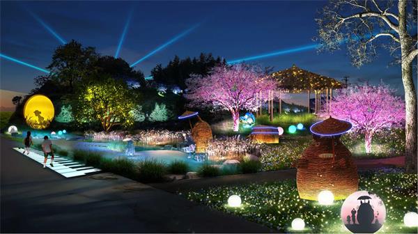 描述:圍繞重要節(jié)點(diǎn)打造夜間景色提升夜游體驗(yàn),完成陌上尋影夢(mèng)想田的設(shè)計(jì)理念。